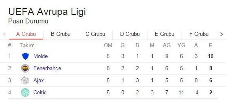Peki fenerbahçe avrupa ligi grubunda kaç puanda.