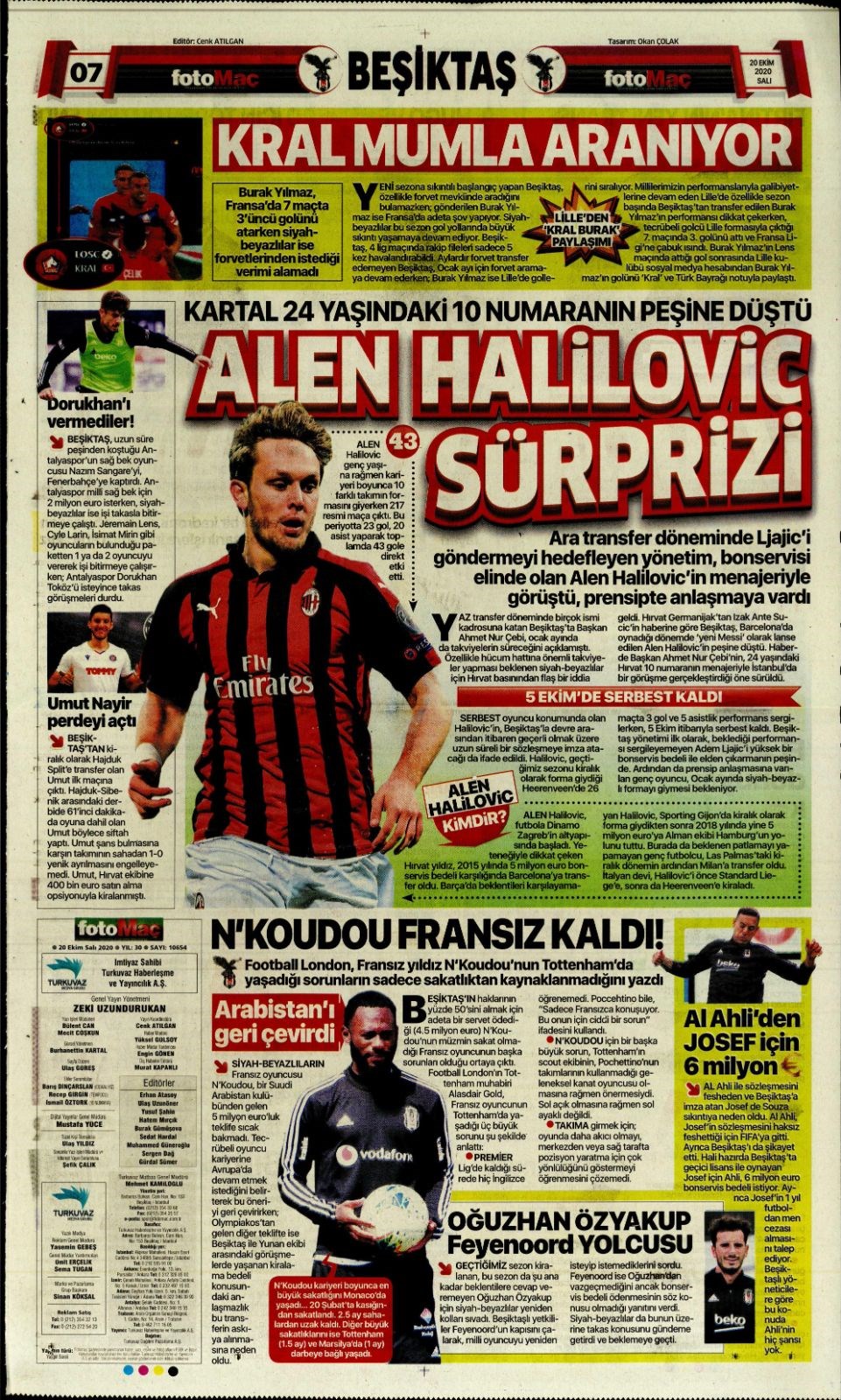 Besiktas Tan Transfer Calimi Galatasaray Ve Fenerbahce De Pesinde Sayfa 1 Besiktas 21 Kasim 2020 Cumartesi