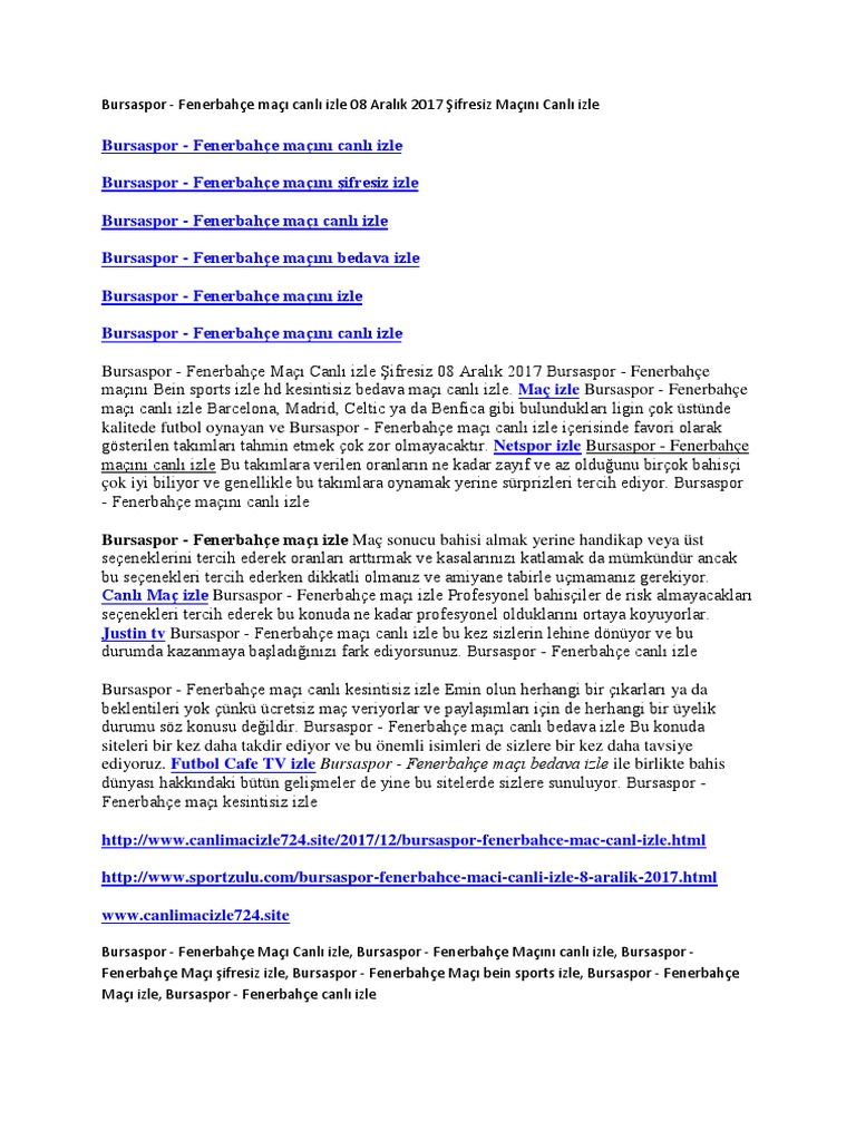 Fenerbahce Bursaspor Canli Izle