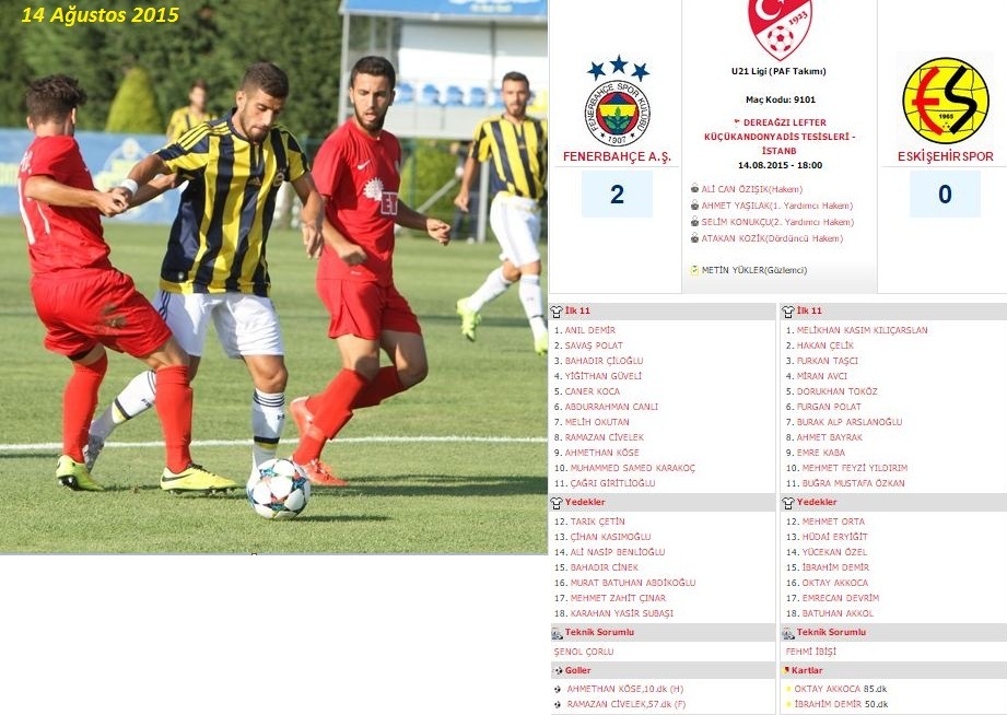 Calakalem Fenerbahce 2 Eskisehirspor 0 U21 Super Lig 1 Hafta Maci