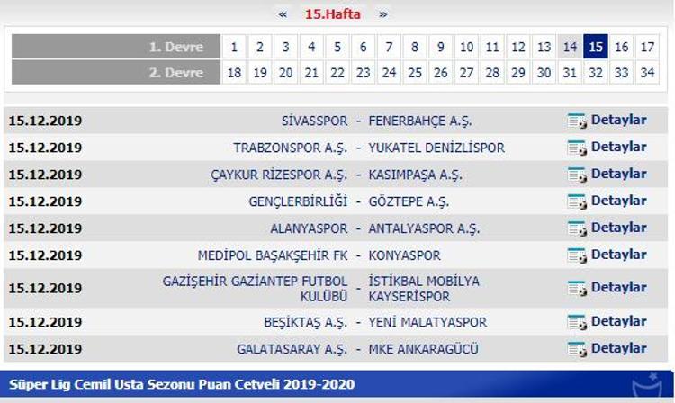 Super Lig Puan Durumu 7 Aralik 2019 Super Lig 14 Hafta Fiksturu Puan Durumu Ve Mac Sonuclari