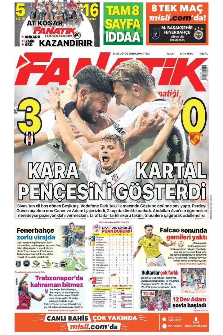 24 Agustos 2020 Gazete Mansetleri Galatasaray Besiktas Fenerbahce Trabzonspor Transfer