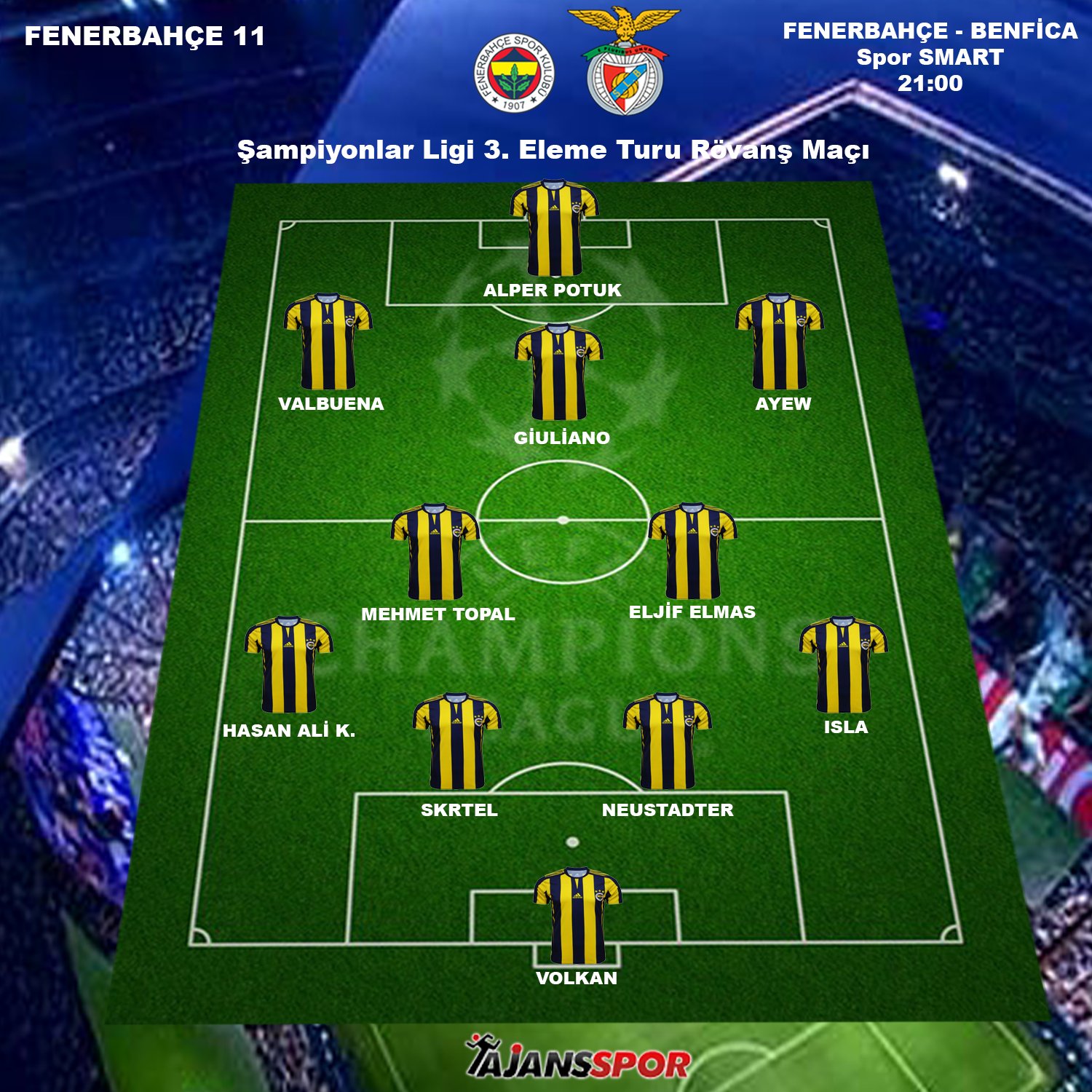 Ajansspor On Twitter Fenerbahce Nin Benfica Karsisinda Sahaya Dizilisi