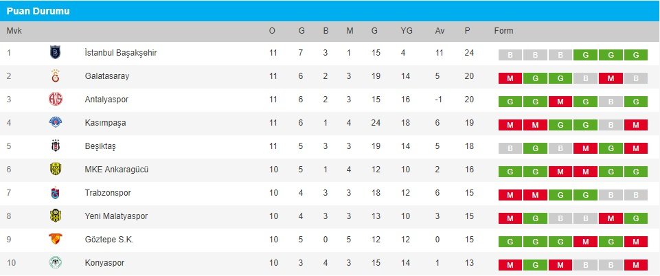Super Lig Puan Durumu Basaksehir Zirvede Farki Aciyor 11 Hafta Super Lig Mac Sonuclari Ulkucu Kadro Ulkucu Haber Sitesi