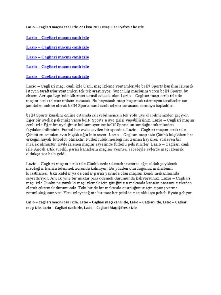 Cagliari Lazio Maci Canli Izle Bein Sports 3 Sifresiz Bedava Mac Yayin Seyret