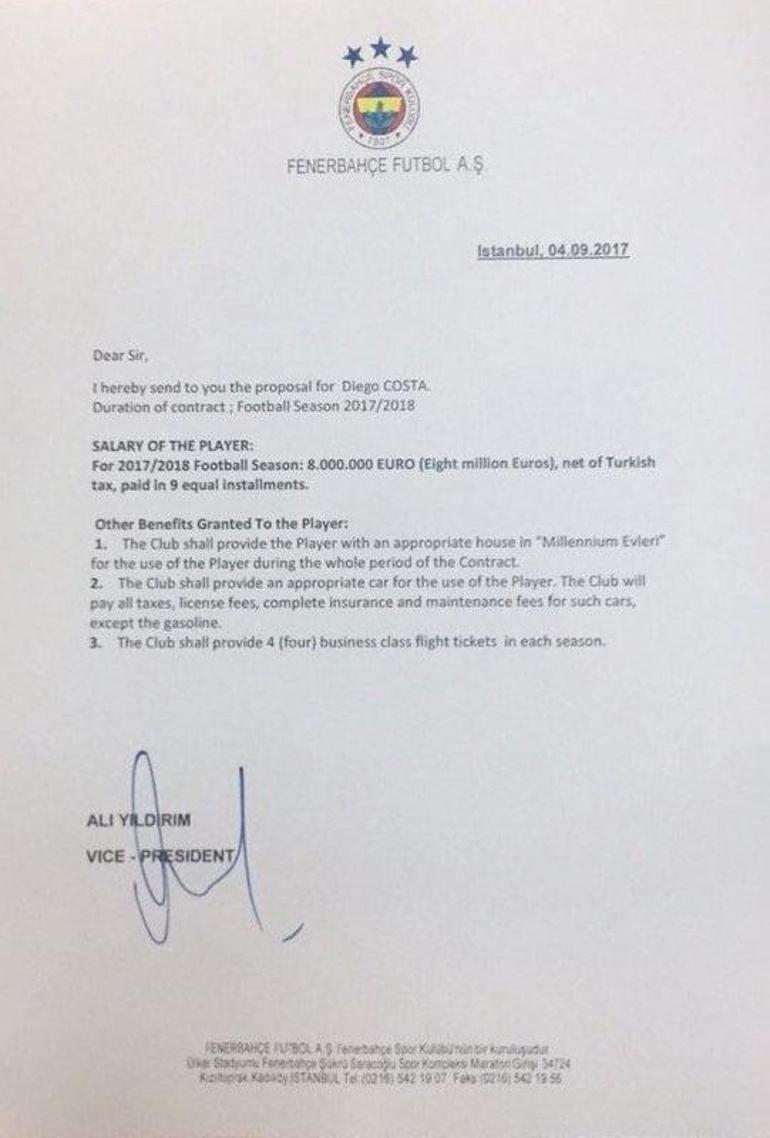 Aziz Yildirim Yonetiminden Diego Costa Ya Yillik 8 Milyon Euro Son Dakika Spor Haberleri