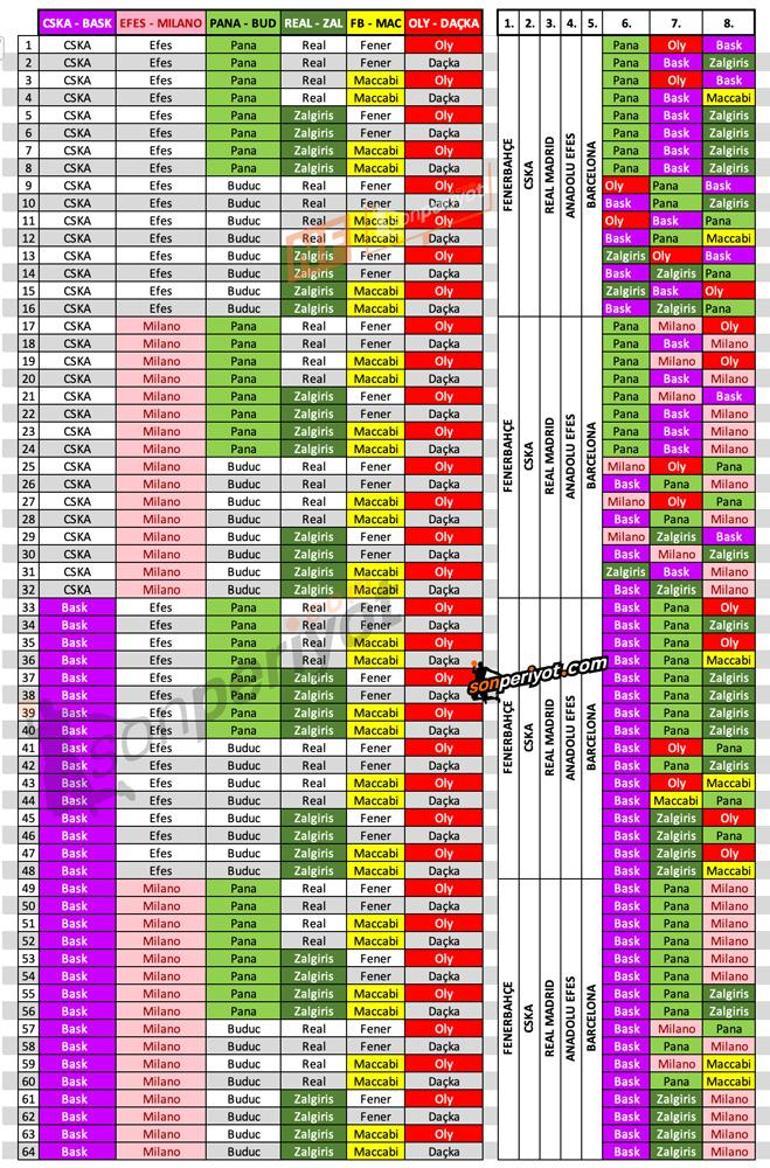 Thy Euroleague Son Puan Durumu Euroleague Mac Fiksturu Fenerbahce Dogus Anadolu Efes
