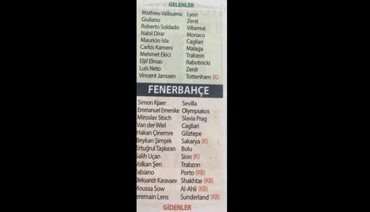 Fenerbahçe Gelenler Gidenler 2018