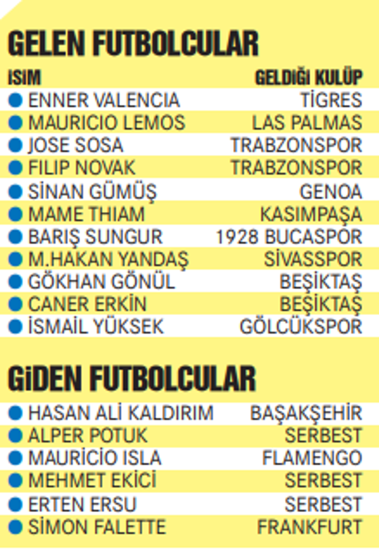 Fenerbahce De Gelenler Ve Gidenler