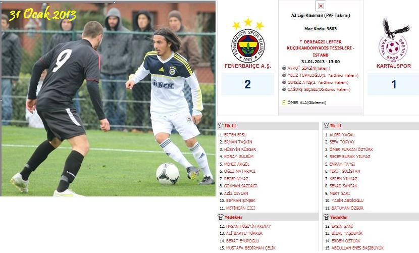 Calakalem Fenerbahce 0 Kartalspor 1 A2 Ligi Marmara Grubu Maci