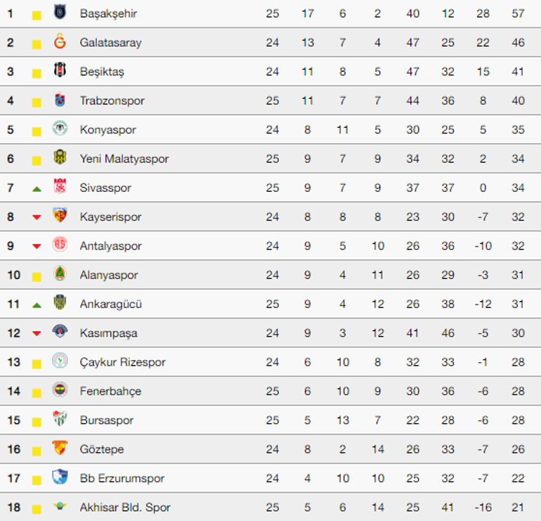 Süper lig puan durumu maç sonuçları fikstür ve istatistikler.