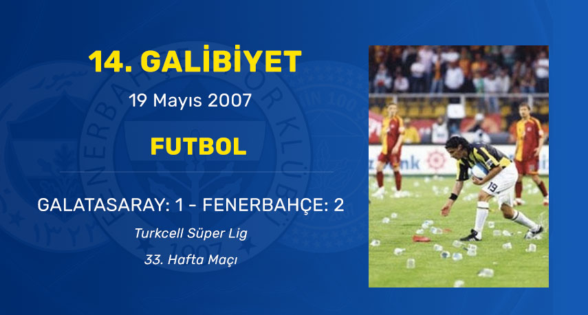 Metin kurt 5 cemil turan 19 fuat saner 45p stadium. Galatasaray fenerbahçe 33 hafta duration. 19 mayıs stadı attendance. Sulu derbi 19 05 2007 galatasaray 1 2 fenerbahçe olayları.